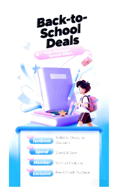 Get ready for the new semester with amazing deals! Textbook discounts, spend & save offers, member exclusives, and free gifts with purchase are waiting for you.